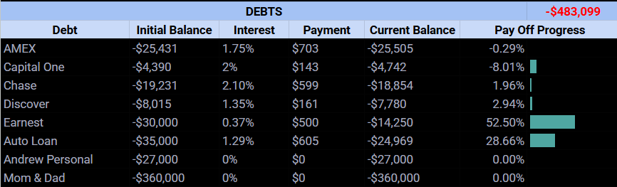 Here’s where everything stands this month, straight from my Google Sheet: