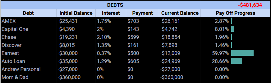 Hey, look at that! My Earnest loan is slowly disappearing! The rest of my numbers aren’t a wonder to look at, they are some ugly numbers!